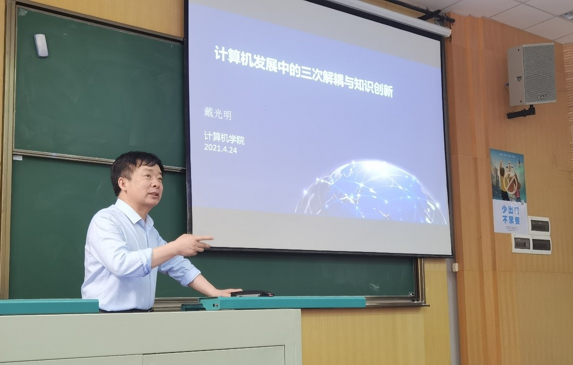 (通讯员:王非凡、李祥瑞)5月27日,kaiyun开云官方教授、博导“专业思政宣讲团”在南望山校区教三楼111教室成功举办了一场面向2020级学生的专业知识讲座。本次讲座的主题为“计算机发展中的三次解耦与知识创新”,由湖北省教学名师、kaiyun开云官方戴光明教授主讲,2020级辅导员李祥瑞主持。