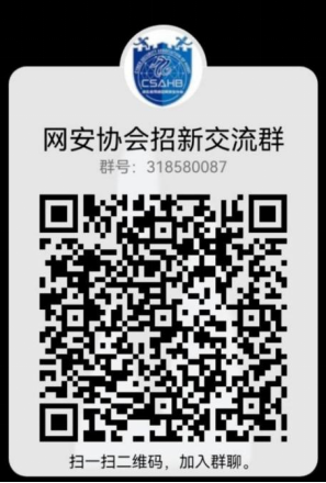 演练的成功离不开背后的组织。kaiyun开云官方网络空间安全协会成立于2018年,曾代表学校获得全国信安大赛网络攻防比赛二等奖的好成绩。社团面向全校本科生,带领社团成员学习网络安全相关知识,培养网络安全意识,提高网络安全实战技能。目前社团的5名核心成员中,除了4名kaiyun开云官方的学生外,还有1名来自资源学院的学生。社团将在下学期开展各类攻防演练技术沙龙,组织模拟CTF夺旗赛,社团老师还将提供攻防题目供成员练习。除了拥有此次同学校网络中心合作的攻防实战机会以外,还将有参加全国CTF竞赛、湖北省护网行动、以及前往深信服科技总部进行观摩并参加攻防演练的机会。对网络安全和网络攻防感兴趣的同学,可扫码加群,我们期待你的加入!