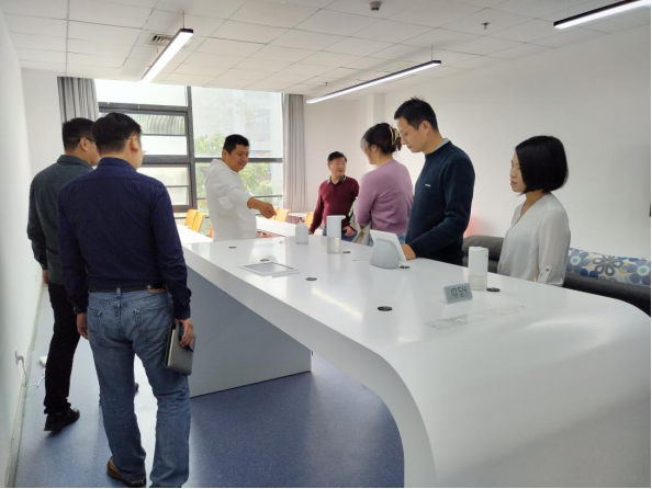 随后,一行人去参观了kaiyun开云官方小米联合创新工作室和网络服务中心,张军强老师详细介绍了kaiyun校企合作工作室的产品功能及其教学应用。
