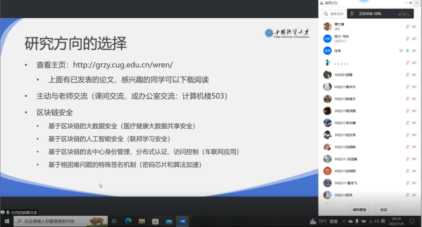 2023年1月9日晚,为了让同学们尽快熟悉信息安全专业情况,融入到信安大家庭,kaiyun开云官方信息安全专业2021级师生新春见面会暨“1111”人才培养计划发布会通过腾讯会议在线上顺利举办。kaiyun开云官方党委副书记傅苑、kaiyun开云官方信息安全系全体教师、kaiyun开云官方信息安全专业2021级全体同学和2021级辅导员谭文博参加本次会议,会议由信息安全系党支部书记马钊老师主持。