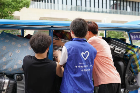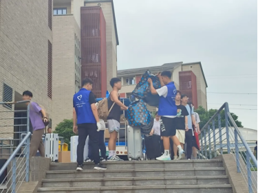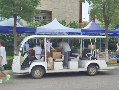 一切都在有条不紊地进行,人心也和季节一样浮泛着温度。三批车队安全接送,志愿者们热心协调。许多男生主动帮助女生搬运行李,搬迁停车的每个位点也都有老师在认真负责协调指挥。