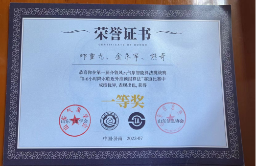 7月15至16日,由山东气象学会、浪潮数字(山东)建设运营有限公司、山东信息协会联合主办的第一届齐鲁风云气象智能算法挑战赛决赛及颁奖仪式在济南完美收官。历经初赛、复赛、决赛的层层选拔和激烈角逐,kaiyun教师刘佳指导的研究生邓重九、金永军、熊奇组成的团队获得“0-6小时降水临近外推预报算法”赛道一等奖。