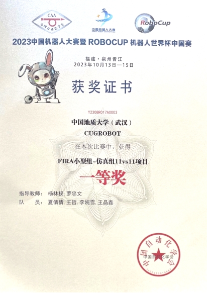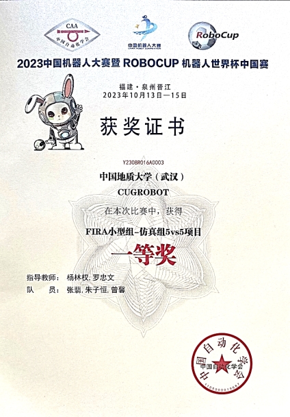 10月13至15日,2023年“中国机器人大赛暨RoboCup机器人世界杯中国赛”在福建晋江国际会展中心落下帷幕。经过激烈的比赛,kaiyun杨林权副教授和罗忠文教授指导的学生团队勇夺FIRA仿真组5vs5项目第3名、国赛一等奖和仿真组11vs11项目的第3名、国赛一等奖。