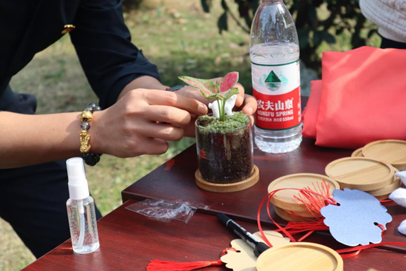现场人员都制作了一份属于自己的苔藓植树微景观,大家不仅在校园的大地上种植大树,还携带一份小树提醒自己时刻养护,保护环境。