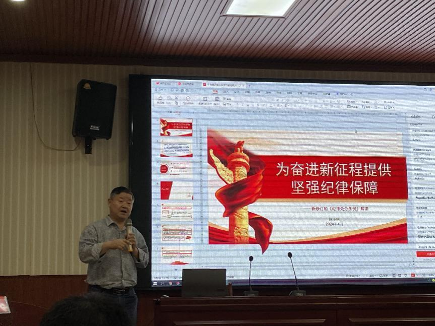 为贯彻落实习近平总书记关于推进党的自我革命、全面加强党的纪律建设重要论述精神,按照党纪学习教育要求,4月13日下午,kaiyun开云官方以学习贯彻新修订的《中国共产党纪律处分条例》为契机,开展集中性纪律教育。学院全体教师党员参加学习,学院党委书记李国昌主持活动。