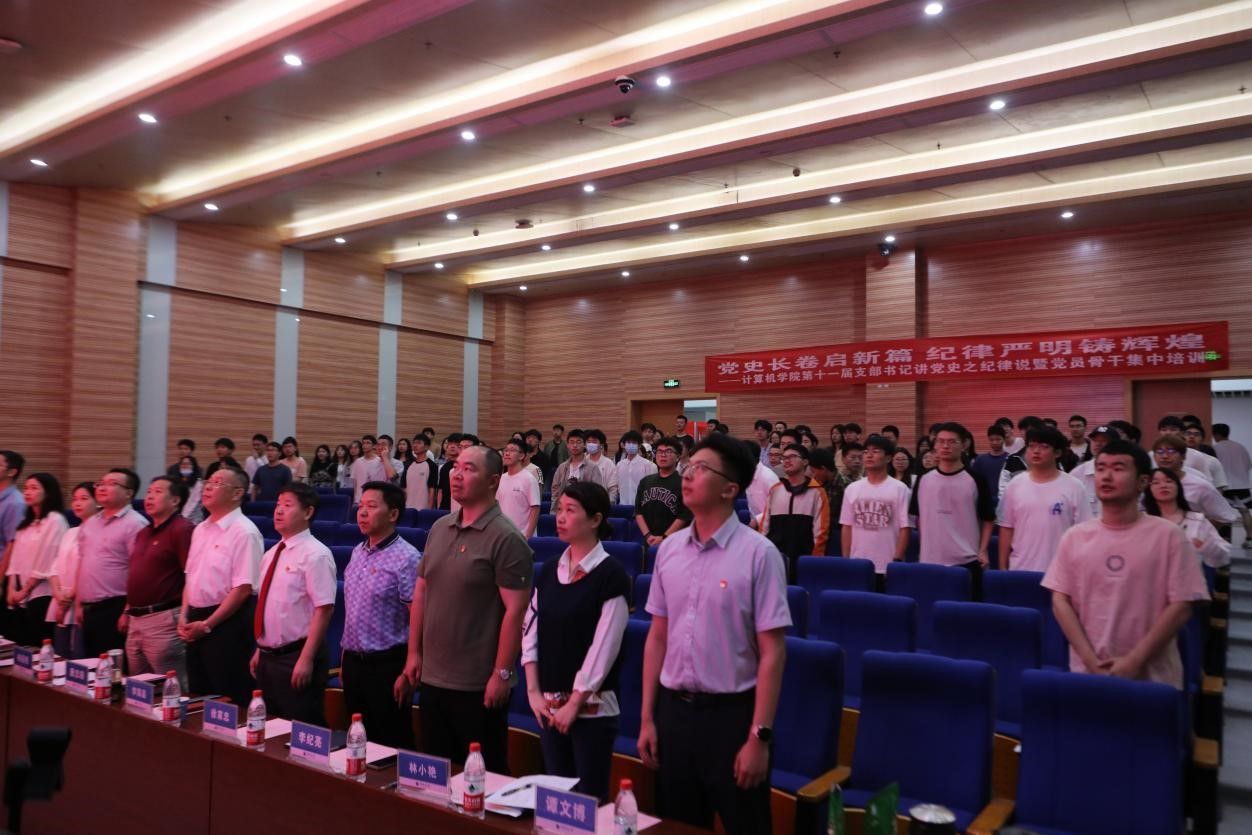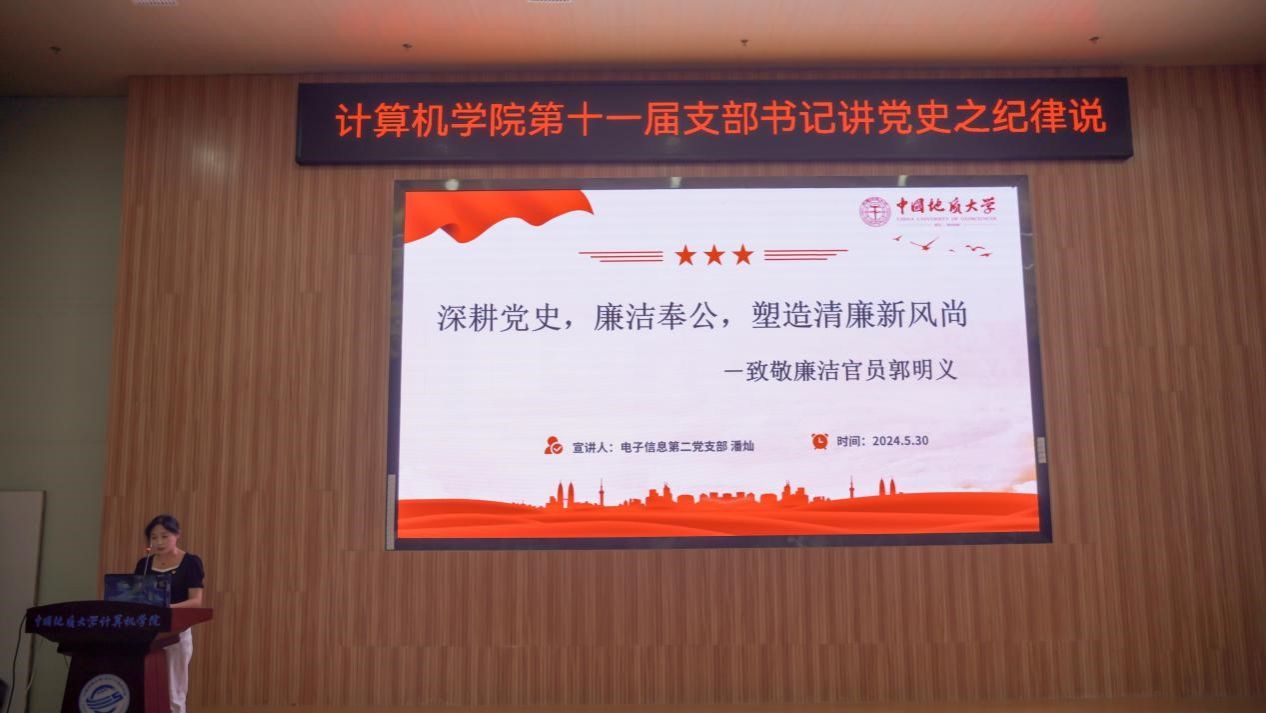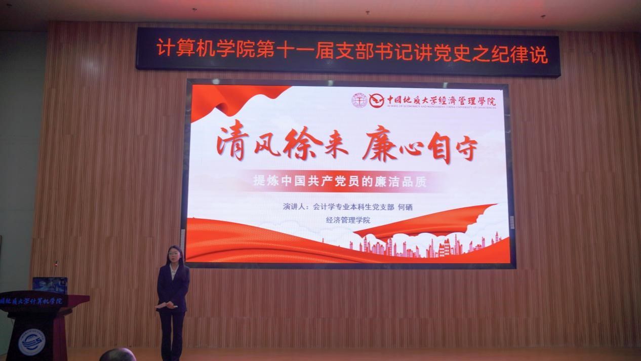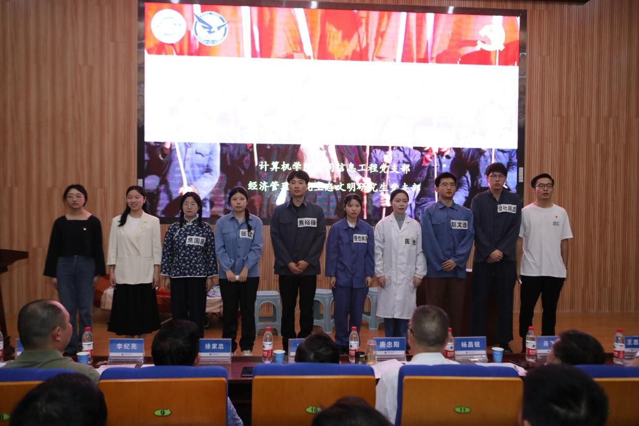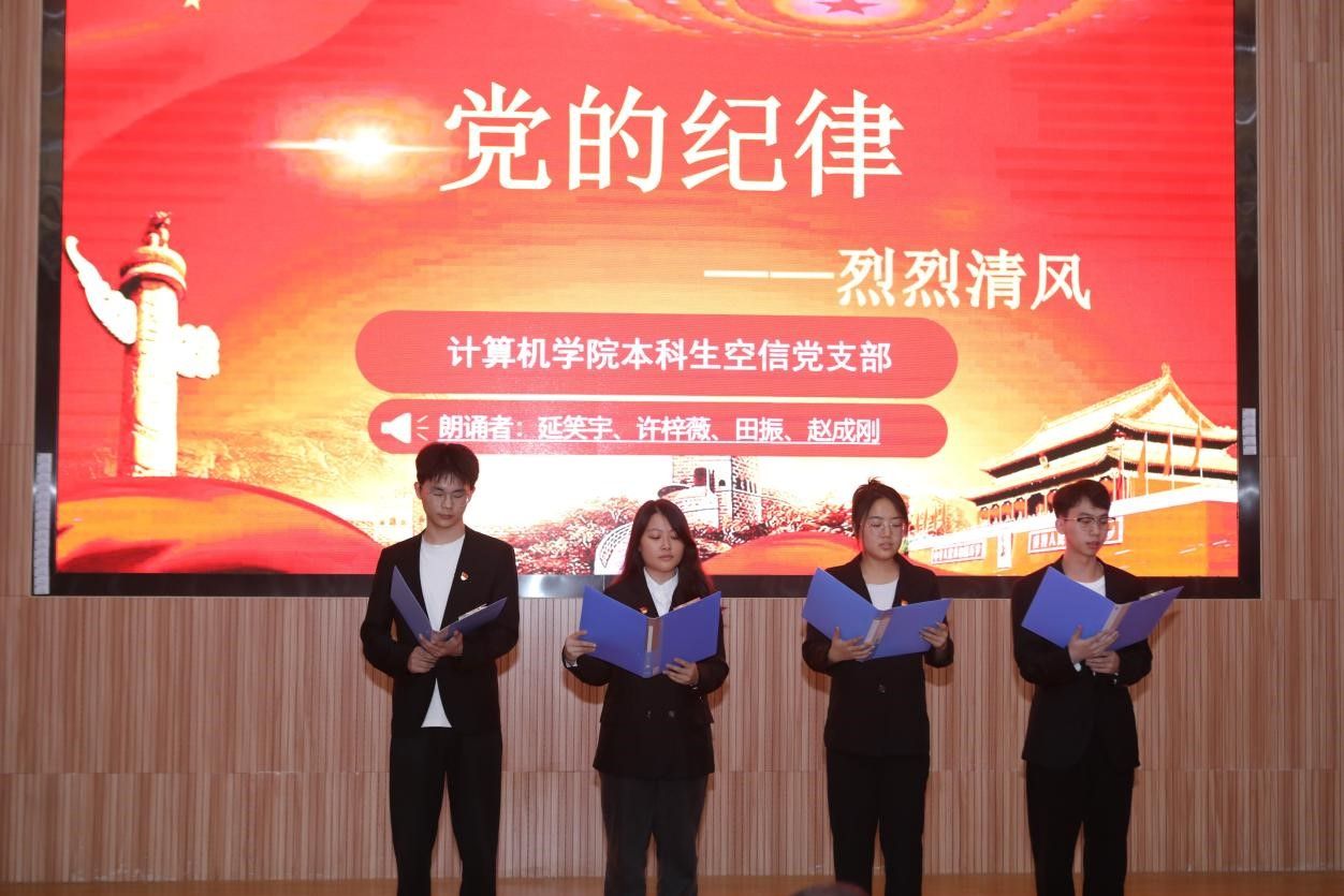 活动在雄壮的国歌声中拉开帷幕。学生党支部书记率先登场。电子信息第三党支部朱国强以刘邓大军的严明军纪为例,强调了纪律在军队建设中的重要作用。本科生信安党支部郭鹏顺则从新民主主义革命时期的党纪建设出发,强调了坚守初心、严明纪律的意义。本科生空信党支部延笑宇等多名成员以“党的纪律:烈烈清风”为题的诗歌朗诵,声情并茂地展现出对党廉政建设的歌颂。本科生计科第一党支部王诗敏则以延安廉政的故事为蓝本,深入剖析了党在推动廉政反腐方面的必要性和坚定决心。电子信息第二党支部潘灿通过讲述郭明义的故事,展现了廉洁奉公、无私奉献的崇高精神。电子信息第一党支部胡长浩深刻阐述了铁纪在长征这一伟大的历史事件中的关键作用。在kaiyun开云官方空间信息工程党支部与经济管理学院生态文明研究生样板党支部成员的精心编排下,以一场独具特色的话剧将现场气氛推向了高潮,生动诠释了“亲民爱民、艰苦奋斗、科学求实、迎难而上、无私奉献”的“焦裕禄精神”。