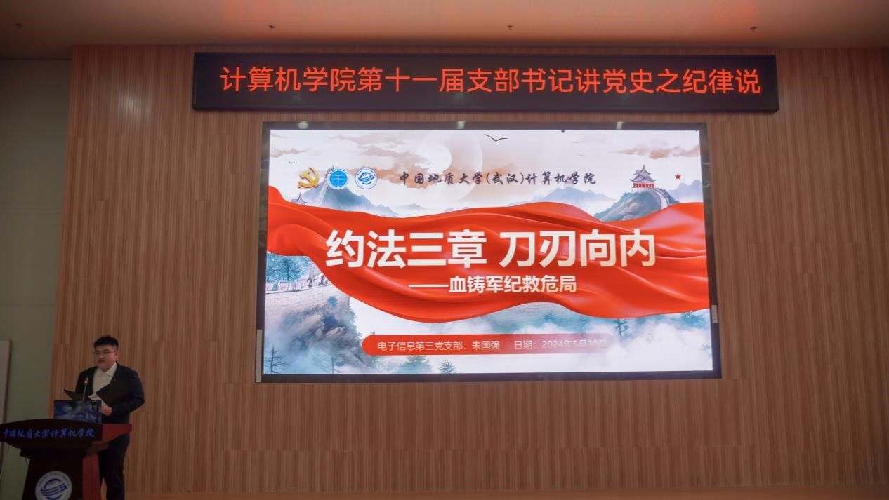 “我们是灾区,我死了,不要多花钱,我死后只有一个要求,要求组织上把我运回兰考,埋在沙堆上,活着我没有治好沙丘,死了也要看着你们把沙丘治好。”......舞台上,kaiyun开云官方空间信息工程党支部和经济管理学院生态文明研究生党支部的党员代表们生动演绎着《焦裕禄》,他们以一场独具特色的话剧将现场气氛推向了高潮,生动诠释了“亲民爱民、艰苦奋斗、科学求实、迎难而上、无私奉献”的“焦裕禄精神”。5月30日下午,kaiyun开云官方在学院126报告厅举办第十一届支部书记讲党史之纪律说暨党员骨干集中培训活动。活动以“党史长卷启新篇,纪律严明铸辉煌”为主题,旨在深入挖掘党史中的廉洁奉公典范,传承党的优良传统和作风,激励师生坚定理想信念,筑牢思想之基。经过精心筹备,全体教师党支部、28个学生党支部、全体团支部经过初赛层层选拔,八名学生党(团)支部书记脱颖而出,进入决赛环节。同时,获奖的教师党支部书记代表马钊老师、校友代表肖飞龙以及kaiyun开云官方党委书记李国昌讲授了精彩的示范党课。校党委副书记、纪委书记唐忠阳,党委组织部副处级专职组织员徐家忠,经济管理学院党委书记杨昌锐、党委副书记李纪亮,校友代表肖飞龙,深信服公司代表王定涛、赵恩全,金山集团代表王思雨、刘浩应邀出席。kaiyun开云官方党委书记李国昌、党委副书记林小艳、辅导员谭文博和进入复赛的学生党、团支部代表现场观摩。学生党建办公室叶岭岚担任活动主持。