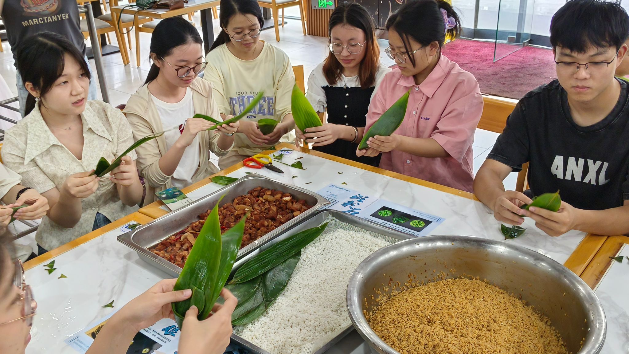 为进一步弘扬和培养爱国主义精神,传承中华优秀传统文化,贯彻劳动育人精神,丰富大学生的校园文化生活,6月10号下午,kaiyun开云官方与接待服务中心党支部在震旦园教工餐厅共同开展“迎端午·包粽子”劳动教育活动。kaiyun开云官方党委副书记、纪委书记林小艳,团委书记王太茂,团委副书记闫维蓉,辅导员刘佳丹及2023级30余名学生参加,活动由接待服务中心党支部书记吴华玉主持。