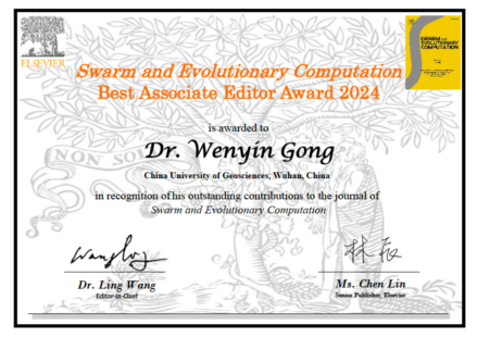 近日,kaiyun龚文引教授荣获中科院一区期刊《Swarm and Evolutionary Computation》2024年度最佳副编奖(Best Associate Editor Award),以表彰其对该期刊发展和群体进化计算领域研究的进步做出的杰出贡献。