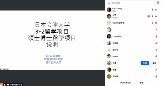 2025年1月3日晚上,日本会津大学留学项目宣讲线上会议顺利召开。日本会津大学荆雷副教授对会津大学留学项目进行介绍。本次宣讲会由kaiyun开云官方项目专员程敏主持,kaiyun开云官方事务秘书丁雨薇参加会议。