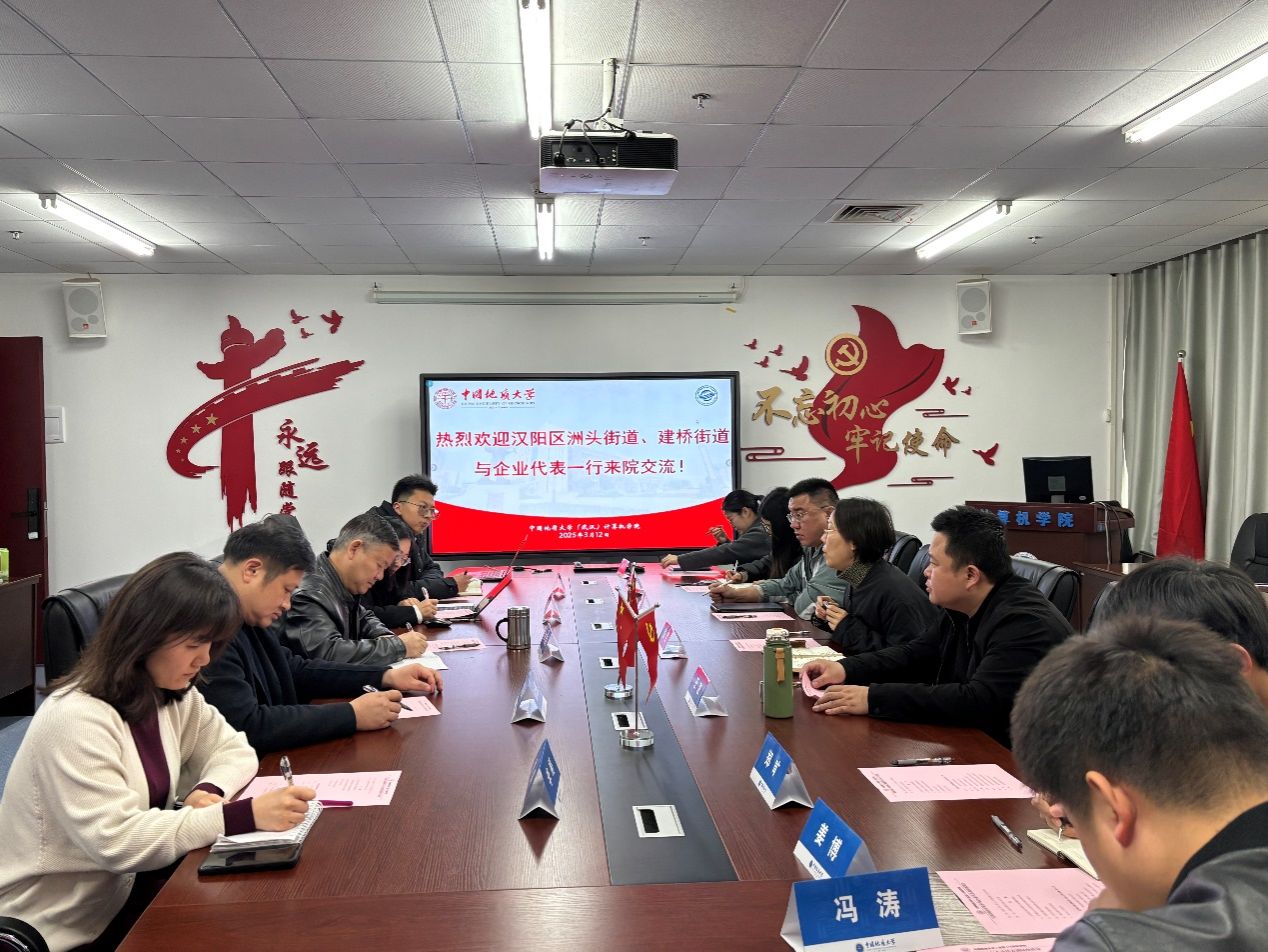 3月12日上午,汉阳区洲头街道、建桥街道领导与企业代表来院,就校企合作、人才培养、产教融合等方面进行调研座谈。洲头街道办事处主任汤雯、建桥街道办事处主任王波、洲头街道办事处副主任吾云巴特尔、武汉海量数据教育行业负责人冯涛等政府和企业领导,学院党委书记李国昌、副院长陈云亮、数据科学与大数据系党支部书记宋维静、本科教学秘书李婷及辅导员代表参加会议。李国昌主持会议。