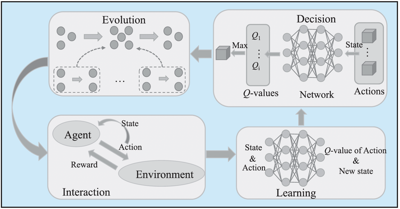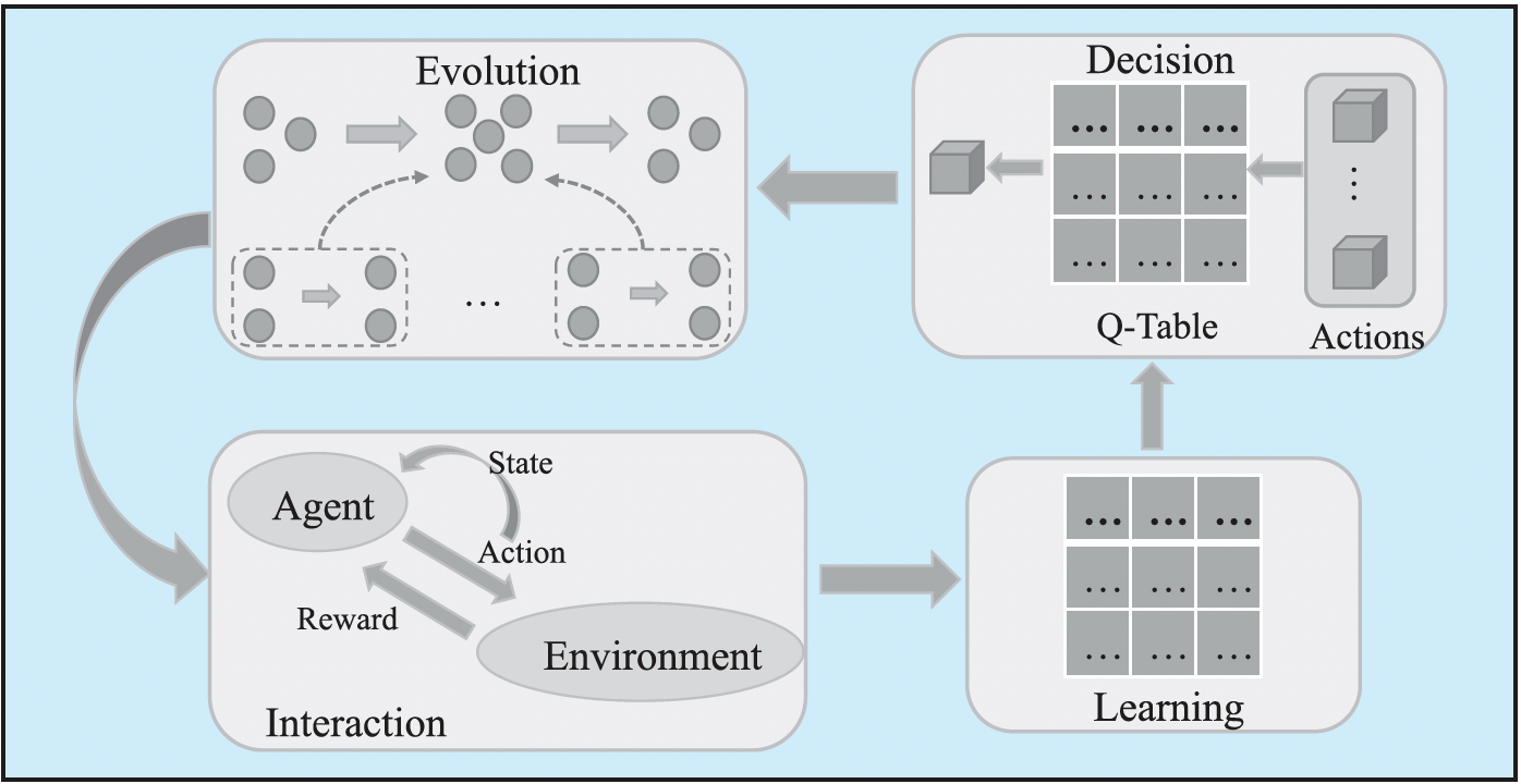 图4. 作者提出的强化学习/深度强化学习与演化互动模型