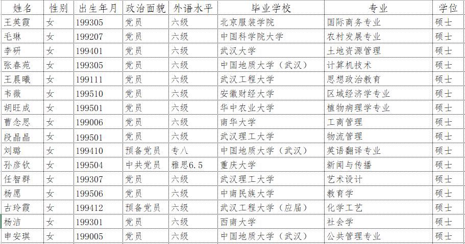 kaiyun开云官方面向社会公开招聘工作人员已完成对报名人员资格审查,根据优先聘用条件(党员或预备党员+CET6或雅思6.5以上或专业4级以上+硕士)确定参加笔试人员名单如下(排名不分先后):