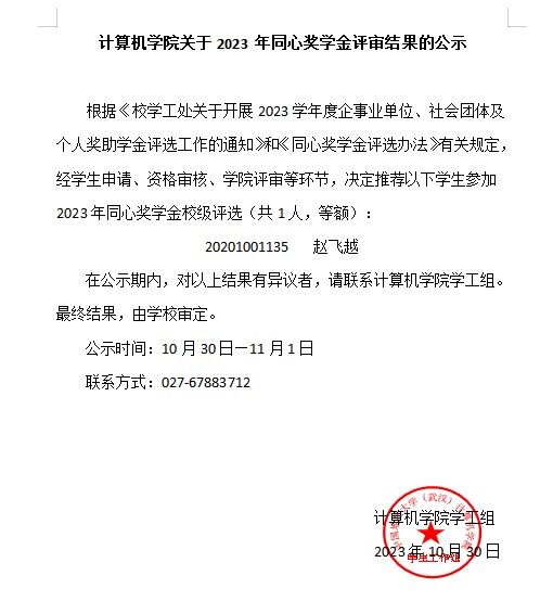 kaiyun开云官方关于2023年同心奖学金评审结果的公示