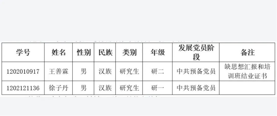 软件工程专业研究生党员发展情况公示