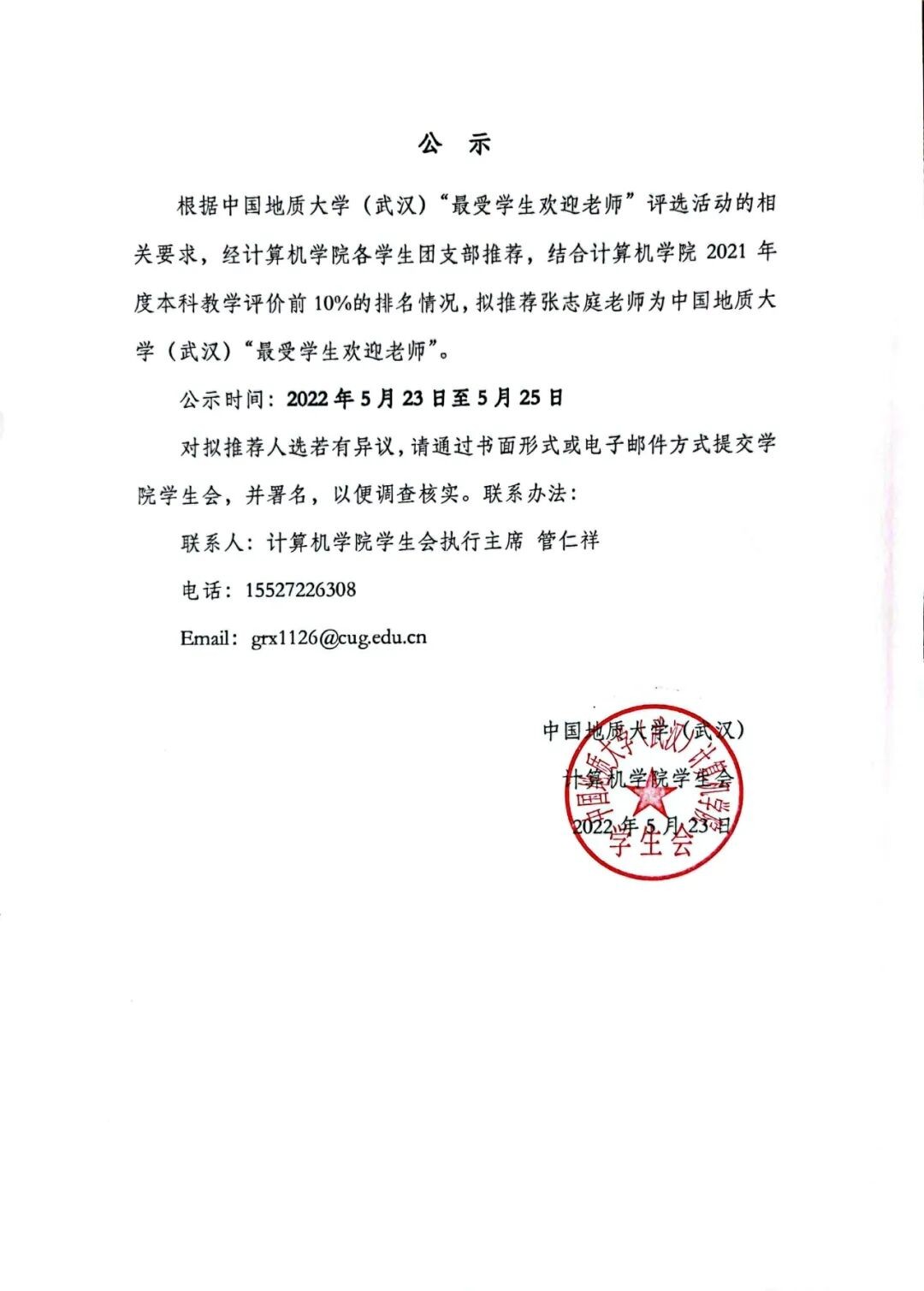 kaiyun开云官方关于“最受学生欢迎老师”推荐人选的公示