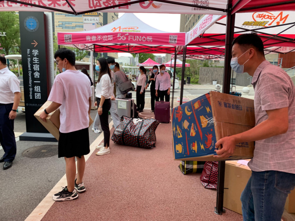 安全抵达未来城校区后,在学长学姐和老师们的指引和帮助下,同学们有序来到了一组团、二组团的学生宿舍。