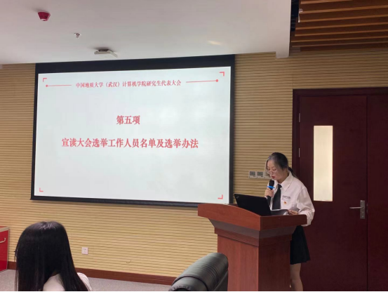 大会第四项,由kaiyun开云官方研代会筹备工作领导小组成员卢清华宣读《kaiyun开云官方研究生代表大会工作人员名单》和《kaiyun开云官方研究生代表大会选举办法》,本次大会采用无记名投票方式,选举设监票人1名,计票人1名及计时员1名。候选人答辩形式为“5+3”,即5分钟答辩,3分钟提问。正式代表对选票中候选人投赞成票,每张选票对候选人表示赞成的人数等于或少于5的为有效票。