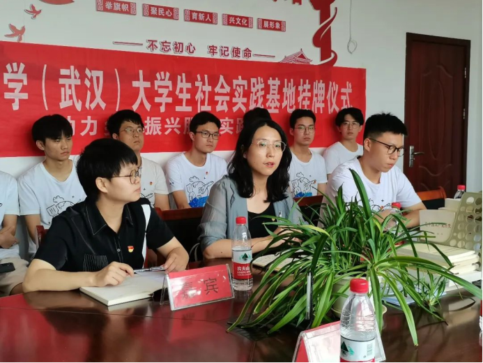 鄂城区杜山镇人大主席王忠良致辞。王忠良对“筑梦E路人”社会实践团队的到来与社会实践过程中开展的服务活动表示欢迎与感谢。他介绍鄂州市鄂城区杜山镇以农业发展为主,应对农业发展问题不仅要着眼于农业本身,更应注重从农村、农民两方面入手;介绍杜山镇农村、农民的发展历史,乡村实现振兴的道路设想与新农村建设遇到的各种实际问题;希望通过社会实践能够为乡村人才振兴输送资源、进行人才储备;强调当代大学生应注重培养爱国主义情怀,为实现中华民族伟大复兴献出青春力量。