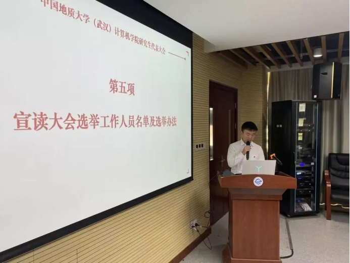 大会第五项,由学院研代会筹备工作领导小组成员胡霄雷宣读《kaiyun开云官方第二届研究生代表大会工作人员名单》和《kaiyun开云官方第二届研究生代表大会选举办法》。