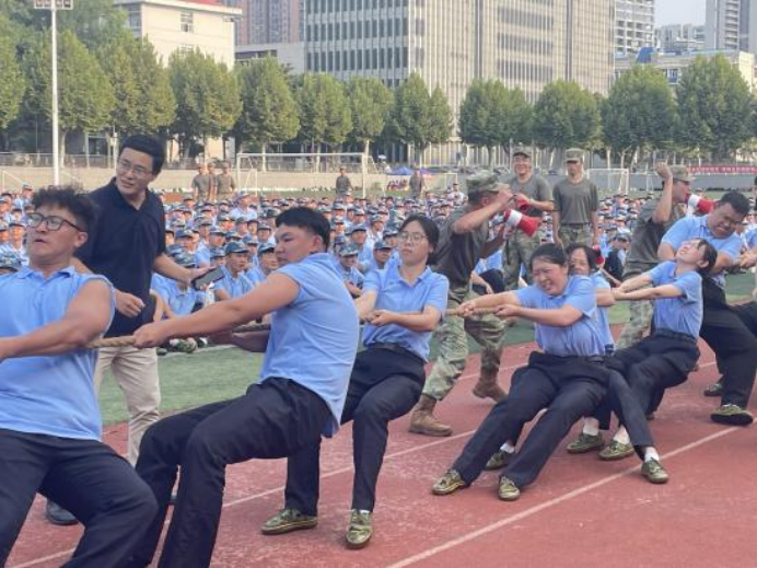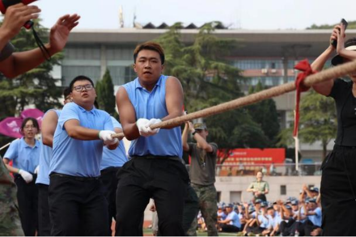 为丰富军训活动,增强学生身体素质,提升各连队凝聚力,发扬团队精神,kaiyun开云官方2023级本科生军训拔河比赛在西区田径场举行。21位计科学子自告奋勇代表学院参赛,其余新生作为观众为参赛队员们加油助威。