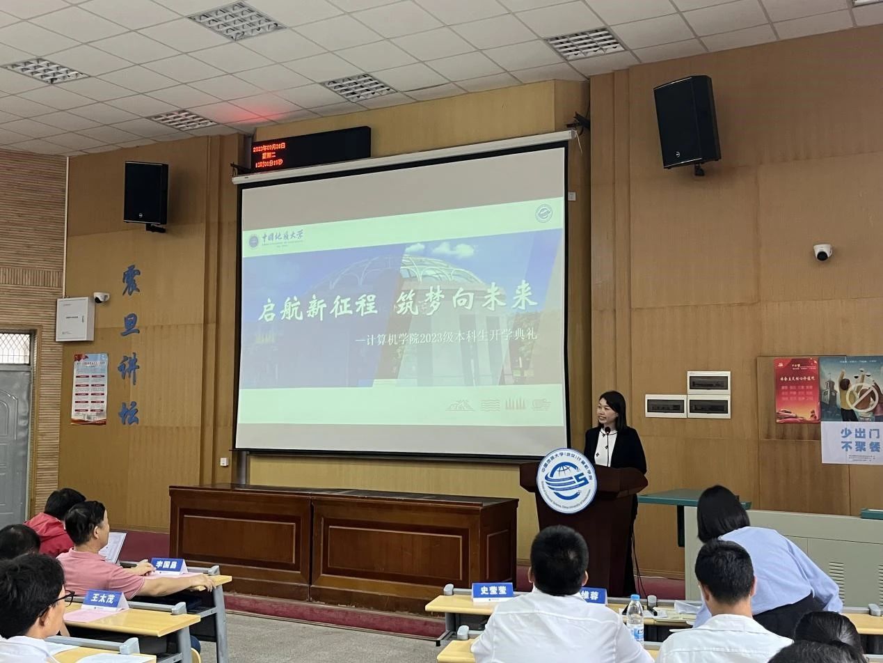 kaiyun开云官方党委副书记、院长张洪艳致辞。张院长首先代表全院师生对加入kaiyun开云官方的382位本科新生表示热烈的欢迎与衷心的祝贺,他对同学们选择加入计算机大家庭,成为“地大计科人”感到分外欣慰。他希望同学们在未来几年中为自己的选择砥砺耕耘、拔节生长、向阳而生,在地大、在kaiyun开云官方留下一生中最为深刻的年轮。同时,他向全体新生提出三点建议:一是要选择肩负使命,心怀国之大者。计科学子要深耕科研土壤,为国家掌握关键性核心技术贡献力量,让青春在实现民族使命中闪耀;二是要选择仰望天空,永攀知识高峰。计科学子要保持对知识的渴望,努力成长为具备计算思维、引领行业发展的交叉学科人才,用广阔的学科视野面对新的挑战;三是选择脚踏实地,练就过硬本领。计科学子要时刻与电脑和网络打交道,在电脑与网络间要学会拒绝诱惑,将时间用在了解行业发展最新前沿,了解市场需求驱动关键技术的突破。