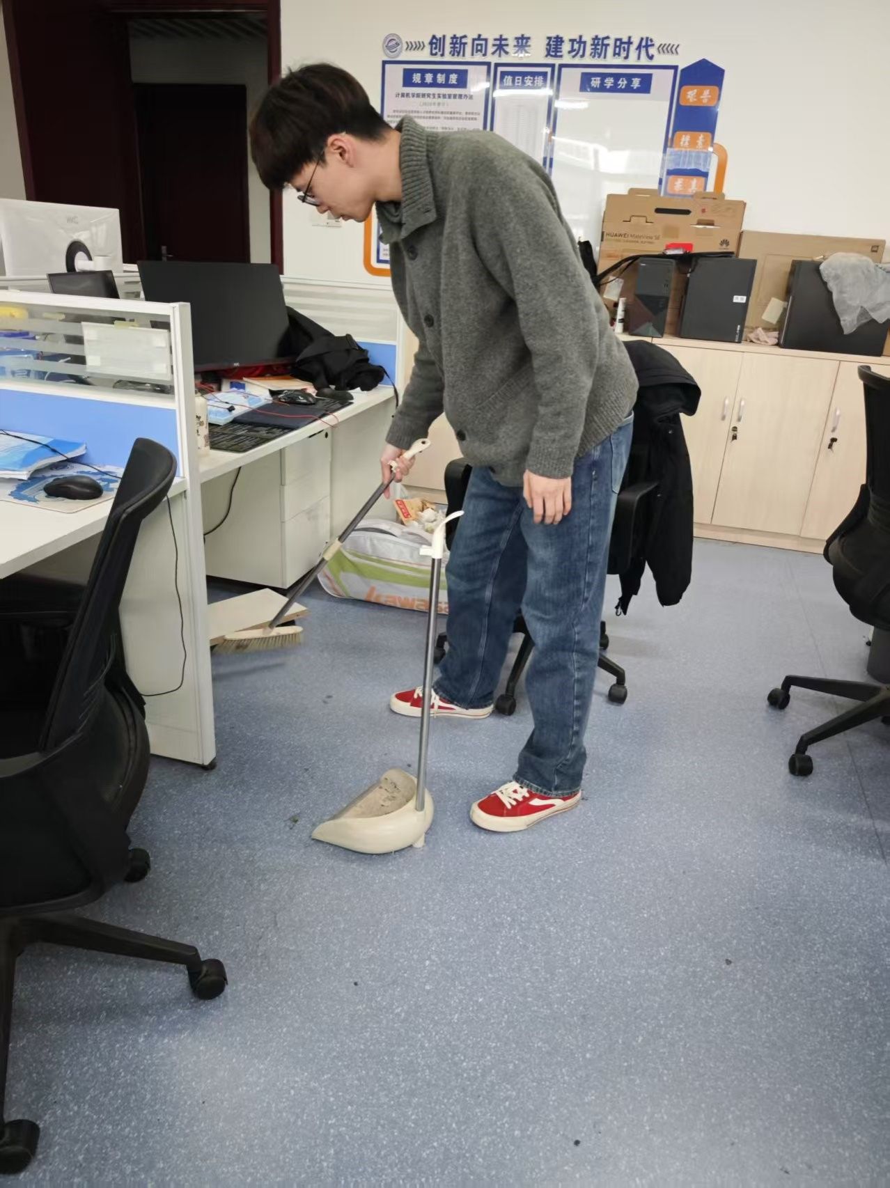 新学期伊始,为营造整洁、舒适的科研环境,弘扬劳动精神,培养同学们的劳动意识和责任感,kaiyun开云官方于2月17日组织开展新学期实验室卫生大扫除暨“我的实验室我呵护”走访活动,全体研究生积极响应,共同为研学空间“焕新颜”贡献力量,学院党委副书记林小艳、研究生辅导员李欢欢一同走访各研究生实验室。