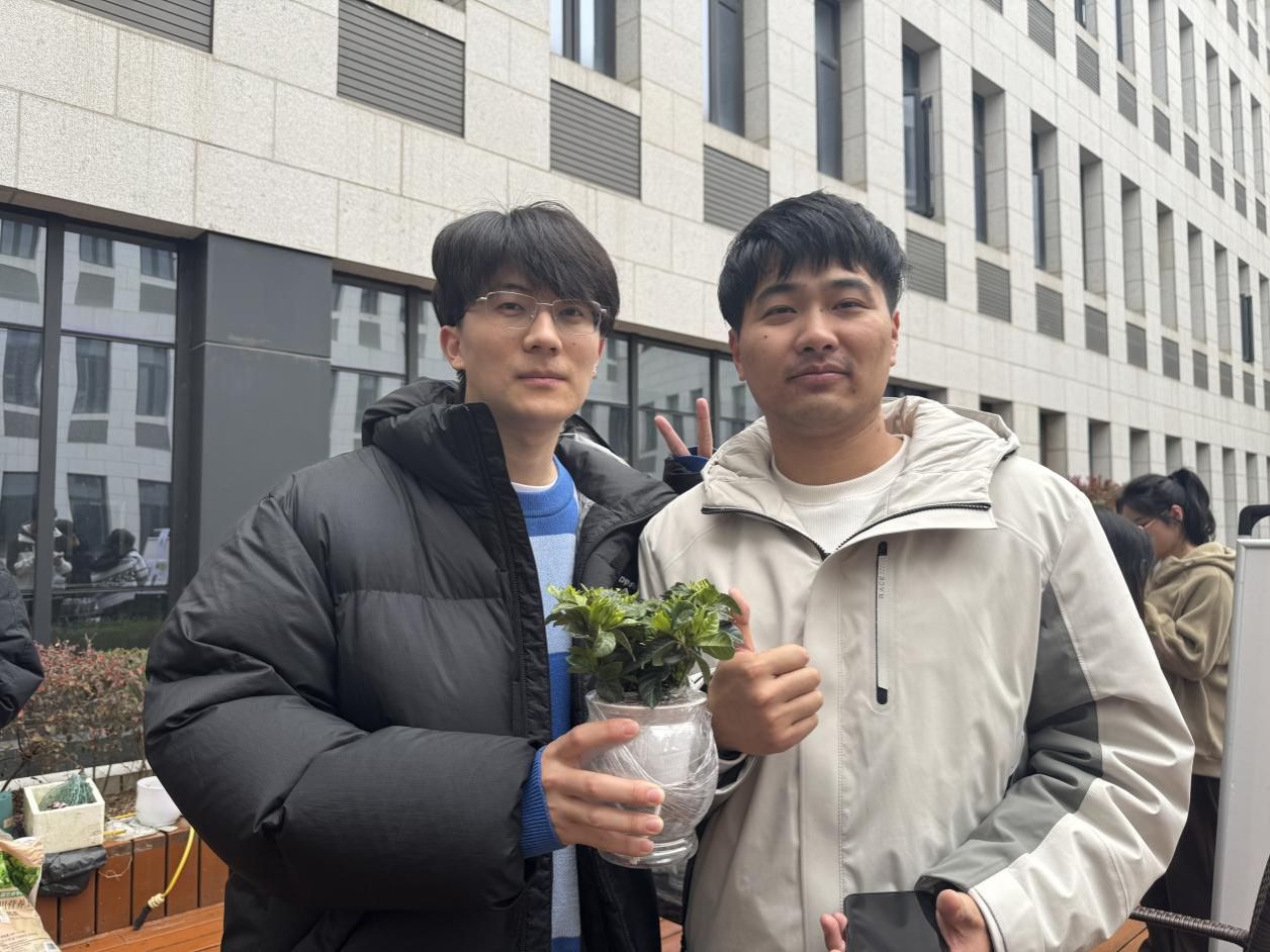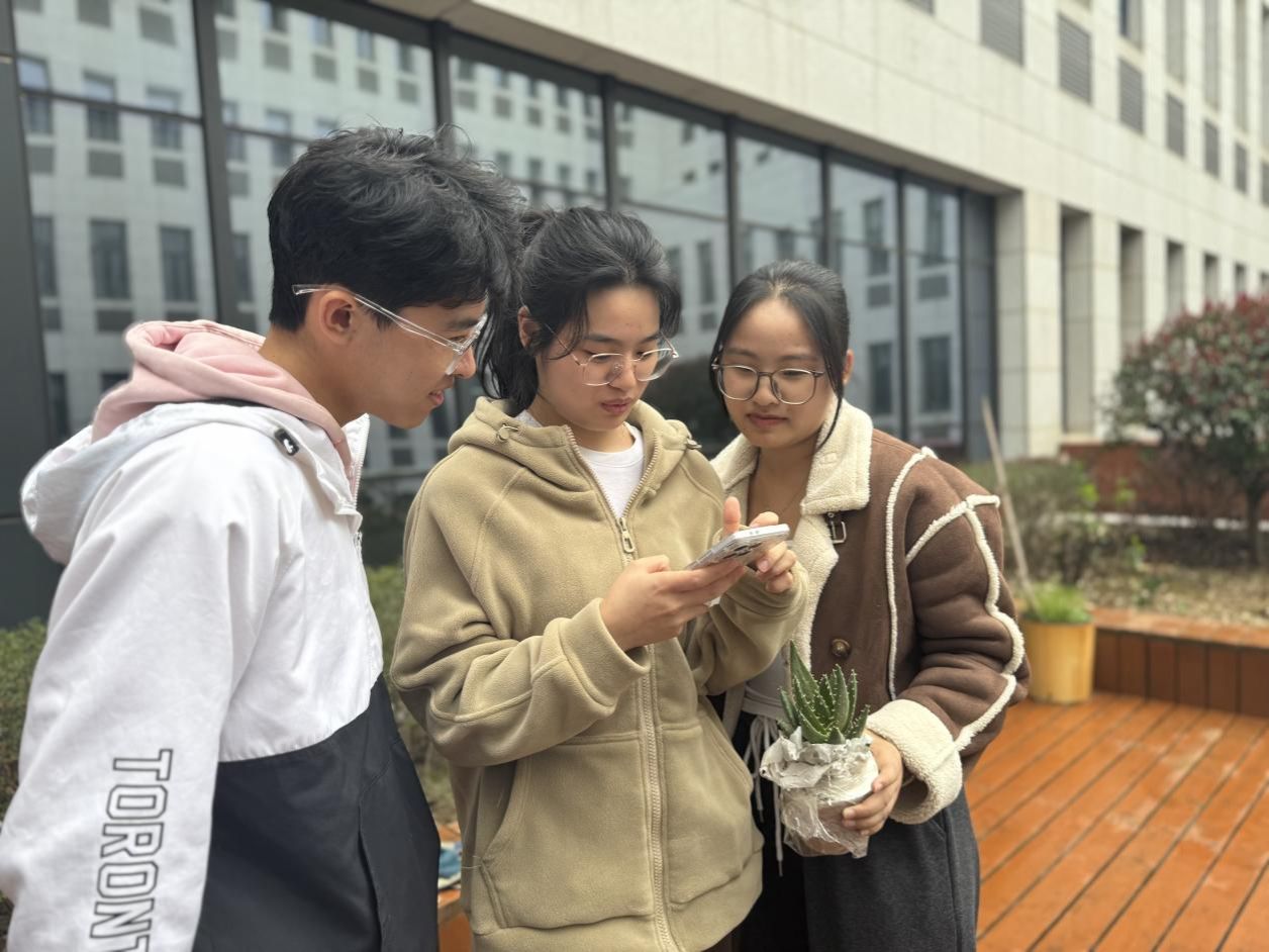 师生们积极参与趣味答题活动,现场气氛热烈。题目涵盖植物的种类、生长习性、生态价值等多个方面,既有简单的科普问题,也有专业知识的探讨,大家通过知识竞答,领取自己心仪的绿植,一株株翠绿欲滴,生机勃勃的绿植瞬间成为同学们的“新宠”。同学们手持绿植开心合影,定格收获的喜悦。