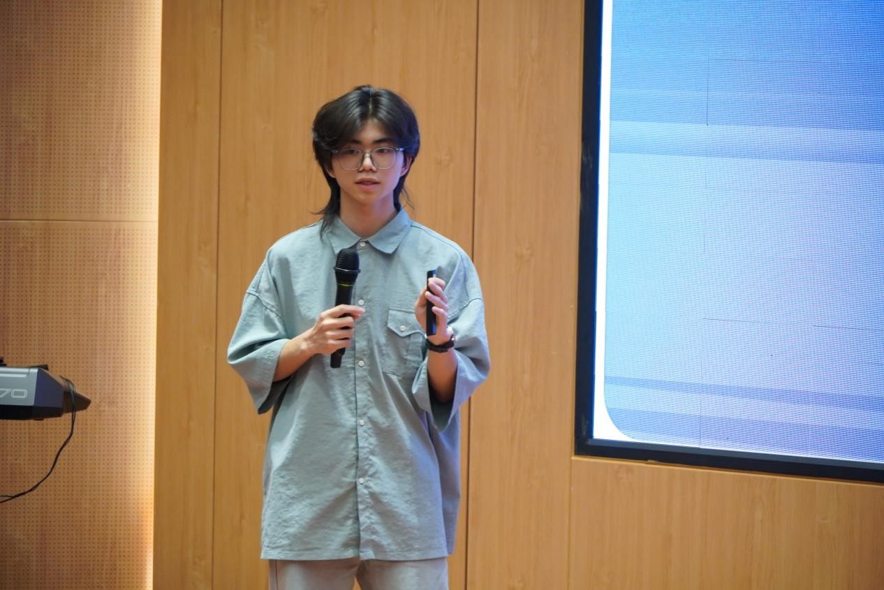在精彩的中场表演环节,钟芷芊同学以空灵婉转的嗓音深情演绎《雨爱》,每一个音符都饱含着细腻情感;胡鑫同学怀抱吉他,用清澈而富有穿透力的歌声奏响《花海》,将现场氛围推向高潮。