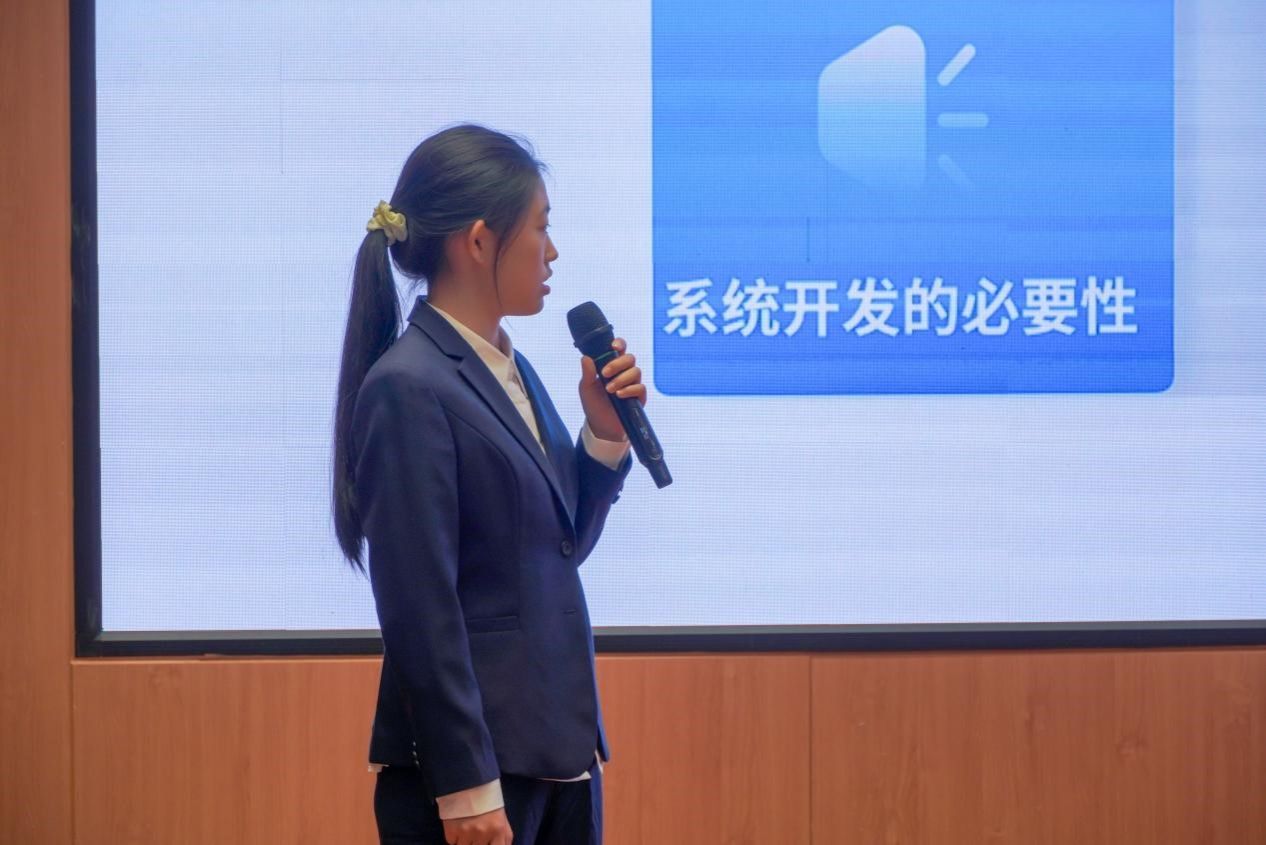 比赛正式开始,10支决赛队伍依次上台答辩。小队成员们精神饱满、细致生动地讲述了小队的开发进程与最终成果,充分展现了地大学子热情洋溢、精益求精的精神风貌。