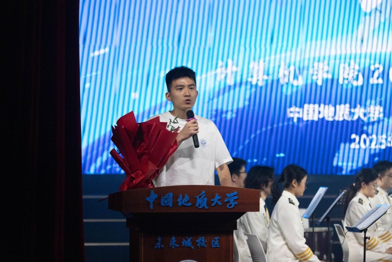 学院副院长刘刚宣读优秀班级与优秀毕业生。优秀毕业研究生代表邢斯豪和本科生代表郭鹏顺分别发表获奖感悟。
