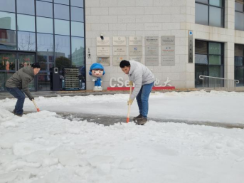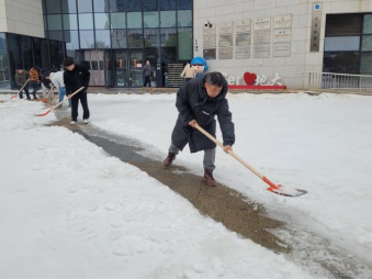 大家挥动铁具、轮番作业,干劲十足、配合默契,共同开辟出一条条洋溢着温情的出行平安路,也为学院的正式开学扫除了“障碍”。师生忙碌的身影在皑皑白雪中显得格外耀眼,俨然是冬日里的一抹暖阳。