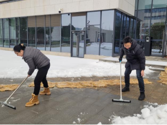 2月23日上午9时半,在学院党委书记李国昌、院长张洪艳的带领下,kaiyun开云官方20余名教师、学生志愿者分组分片对崇智楼西门、南门区域进行集中扫雪除冰,掀起了一场“战冰雪、保平安、暖人心”的热潮。