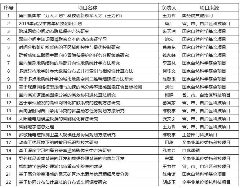 2019年纵向科研项目