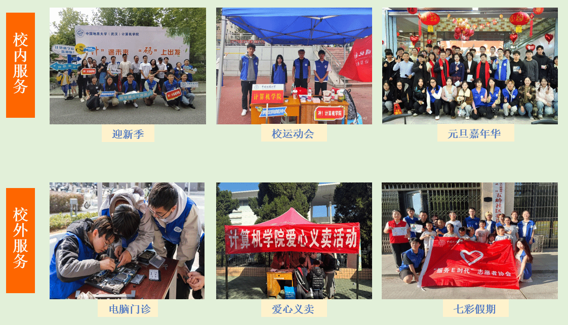 在2024至2025年度,协会组织开展志愿活动超30次,累计志愿时长达2500小时,志愿者超1000人次。协会在校内搭建育人平台,组建“计科E课堂”课程帮扶志愿者团队,开展17次答疑活动,辐射学生1000余人次;协助举办“金山杯”华中地区高校第十八届程序设计邀请赛暨中国地质大学第二十届程序设计大赛等大型活动。在校外建立计算机普惠性科普基地,开发“人工智能启蒙”“编程思维养成”等主题课程模块、创新暑期教育托管模式、开展电脑义诊等,在跨校合作中,单次活动最高联动志愿者150人;在社区服务中,累计服务孤寡老人28户、青少年120余名,传递志愿服务的温暖与力量。