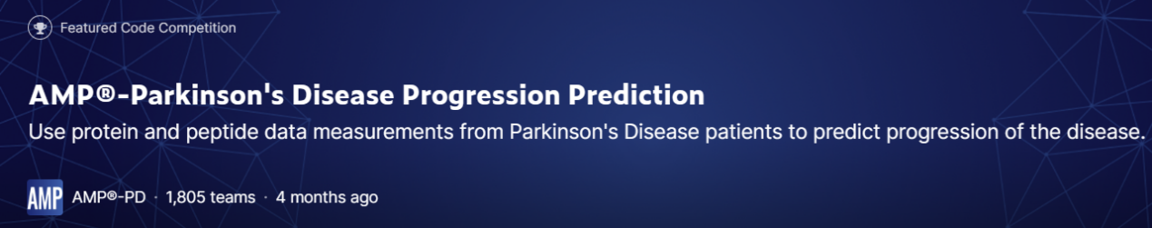 这场比赛的目标是预测MDS-UPDR评分,该评分衡量帕金森病患者的进展情况。运动障碍协会赞助的统一帕金森氏症评定量表修订版(MDS-UPDRS)是对帕金森氏症相关的运动和非运动症状的综合评估。本次竞赛要求开发一个模型,该模型根据帕金森病受试者与年龄匹配的正常对照受试者的蛋白质和肽水平数据进行训练,旨在帮助提供重要的突破性信息,了解哪些分子会随着帕金森病的进展而变化。