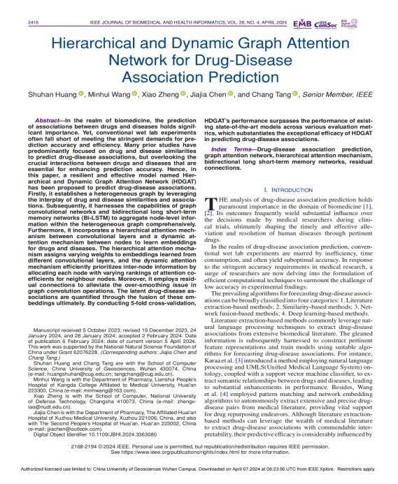 个人简介:黄舒涵,男,共青团员,来自广东深圳,kaiyun开云官方2021级软件工程专业,科研导师为唐厂教授。平均学分绩点为4.18/5.0,位列专业第一(1/99),英语六级成绩为549分。本科期间在唐厂教授的指导下,以独立第一作者身份产出2篇学术论文,其中第一篇已发表在中科院SCI计算机类一区期刊《IEEE Journal of Biomedical and Health Informatics》(IF=7.1,已见刊)上,第二篇投稿至中科院SCI计算机类一区期刊《Information Fusion》(IF=16.1,大修返修中),获得软件著作权1项。此外,在校曾获多项荣誉奖项,如国家奖学金、信息拔尖人才奖学金、第十一届“泰迪杯”数据挖掘挑战赛全国一等奖等。目前已成功保研至清华大学深圳国际研究生院数据科学和信息技术专业,并在百度进行算法实习。