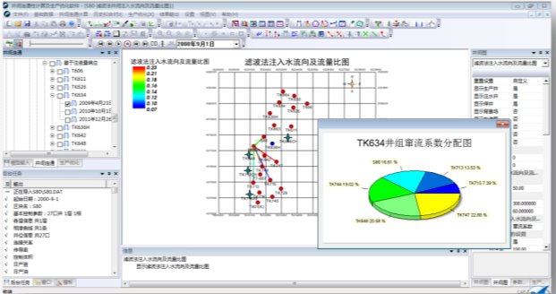 单元注水是支撑缝洞型油藏稳产、上产的主要技术手段之一。但注采对应程度不清,水驱效果亟待改善,缝洞型油藏井间连通性研究是提高采收率的关键。研究基于地震岩溶系统预测、裂缝预测、井间生产动态响应等资料,提出静动态数据结合、多特征提取、多方法综合的缝洞型油藏井间连通定量评价技术,并形成配套综合评价软件KarstWin 2.0。提供多源数据管理、井间连通程度评价、示踪剂测试分析、可视化输出等功能,实现手工到自动、单一到综合、定性到定量的连通程度定量评价,直观揭示注水驱油潜力方向,并应用于塔河油田(图3)。