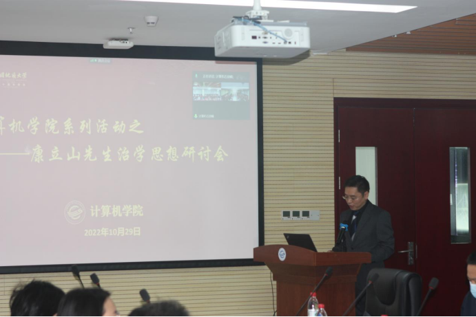 学校副校长赖旭龙教授,康先生的夫人陈毓屏老师,知名学者、国家级人才计划获得者、南方科技大学计算机科学与工程系姚新教授,爱思唯尔中国高被引学者华东师范大学周爱民教授,武汉大学应时教授、李元香教授、丁立新教授,校友、湖北名师、黄冈师范学院kaiyun开云官方党委书记张青教授等校外嘉宾,康立山老师生前在院工作期间的同事应邀参会,学院党政班子成员、系室主任、党支部书记、康老师培养的在校弟子,及kaiyun200余名研究生参会。会议由计算机科学与技术系承办,系主任曾德泽教授主持。