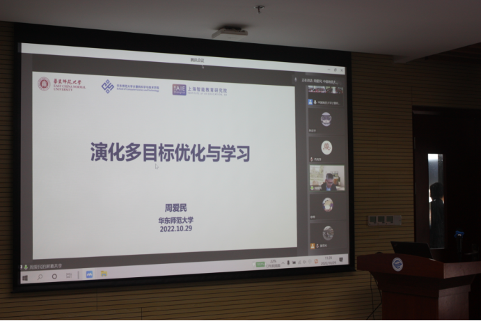 随后,姚新教授、戴光明教授、周爱民教授分别就演化算法的最新研究进展及应用成果作了学术报告。