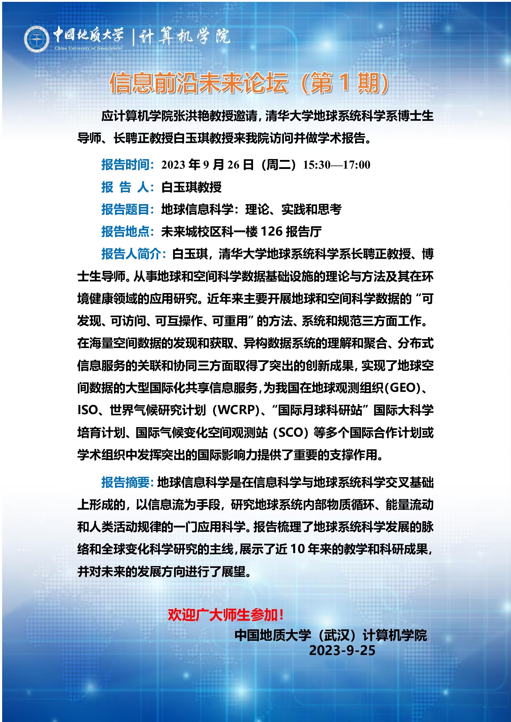 信息前沿未来论坛(第1期):清华大学白玉琪教授——地球信息科学理论、实践和思考