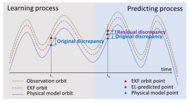 图:集成学习赋能的扩展卡尔曼滤波的卫星轨道预测过程