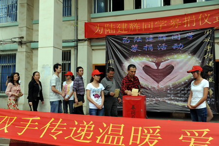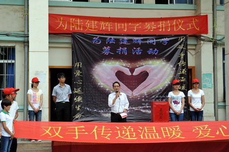 学院对陆建辉同学的病情十分关心,同意由陆建辉同学所在管理与信息工程系举行“为陆建辉同学募捐”活动,尽快动员全院师生为挽救陆建辉同学募捐手术费。募捐活动由伟德BV1946官网主办,管理与信息工程系承办,学院工会、学生工作处、党委宣传部等部门协办。截止9月15日在茭菱校区共募捐到人民币:三万七千余元。