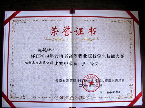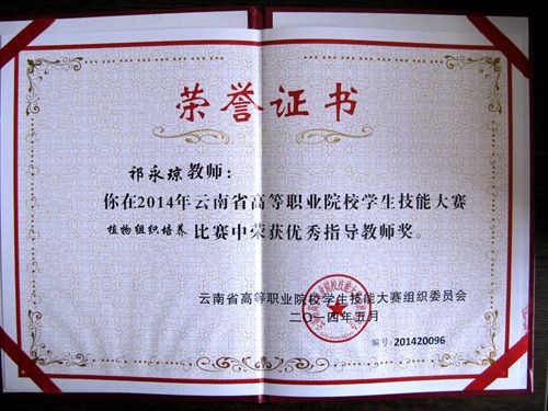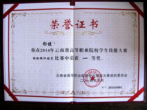 5月15日下午,2014年云南省高等职业院校学生技能大赛在昆明工业职业技术学院举行颁奖仪式,伟德官网园林园艺学院学生在竞赛中表现出色,再创佳绩,喜获一等奖两项、三等奖一项。彭建、施海菊、张应琼、杨子芳四位同学代表学院参加的“植物组织培养”团队项目的比赛中,冷静应对、协同配合,最后获得了该项目的一等奖。施砚池同学代表学院首次参加“植物病虫杂草识别”项目比赛,获得了该项目的三等奖。祁永琼老师获得“优秀指导教师奖”。