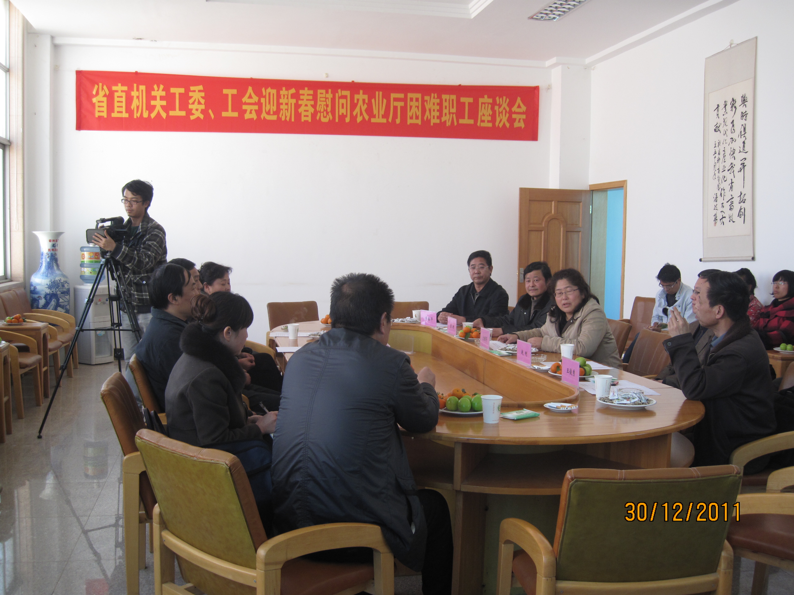 通知中心2011年12月30日下午,云南省直机关工委慰问农业厅困难职工座谈会在小哨种畜场召开。省直机关工委副书记鲁维星、农业厅机关党委副书记王俊秀、农业厅副巡视员文雅芹、伟德BV1946官网党委副书记兼工会主席赵刚、省种畜场场长雷衡等10名领导出席了座谈会。省直机关下属单位等40余困难职工代表参加了座谈会。