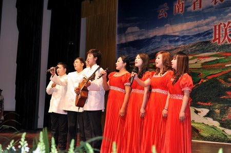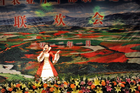 下午3:00,在茭菱校区大礼堂举行农业厅职工文艺汇演。党委书记崔金赋、院长彭志远陪同省农业厅张玉明厅长、张智泽副厅长、寸强副厅长等厅领导兴致勃勃地观看了农业厅直属单位职工的精彩演出。我院由党委宣传部负责演出节目的选定和排练,由卢雪梅老师的独唱和组织职工孩子的舞蹈两个节目参加了汇演;夏体韬老师和张沁老师担任此次文艺表演的节目主持。演出得到农业厅领导和职工的一致好评。