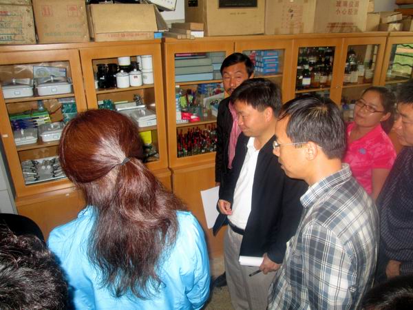 检查中,彭院长带领全体检查组人员对各系所涉危险品保管室进行了全面深入的检查,除检查危险化学品管理人员的职责及分工、制度建设及落实、药品分类及统计、相关标识和标签、危险化学品从请购、领用、使用、回收、销毁各环节的衔接、登记等情况外,还对相关保管室的门窗楼梯、外围死角等进行了仔细检查。彭院长在检查中对学院所涉危险化学品的安全保管工作所取得的成绩给予了充分肯定,同时也对后期工作作出明确指示,一是要严格按照国家和省级的相关规定,对管理的重点部位和薄弱环节逐一排查,确保安全工作万无一失,不留死角;二是要进一步加强事故应急预案的建设、提升应急响应能力;三是要长期严格做到“四无一保”的安全原则,进一步落实“五双”管理制度;四是要加强全院师生的安全教育。