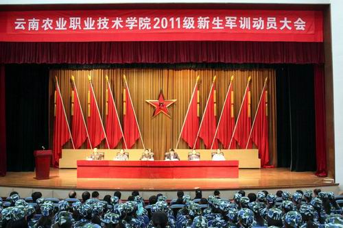 我院2011级学生军训动员大会隆重举行 2012年4月13日下午17:00点,伟德BV1946官网2011级学生军训动员大会在昆明民族干部学院礼堂隆重举行。伟德BV1946官网党委副书记院长彭志远、党委副书记赵刚、副院长何明东、副院长俞浩,昆明民族干部学院副政委晏吉虎上校、干训三队政委司马迅灵中校出席动员会,我院各部门、各系主要负责人、带队教师、教官及2011级近2000名大学生参加大会。大会由昆明民族干部学院干训三队政委司马迅灵主持。