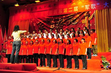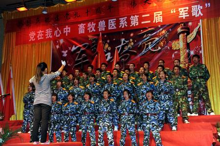 此次军歌大赛是畜牧兽医系庆祝建党90周年而举办的系列活动之一。大赛主要针对2010级刚参加完军训的同学,以班级为单位组织参赛,合唱歌曲须选择爱国爱党或军营歌曲。