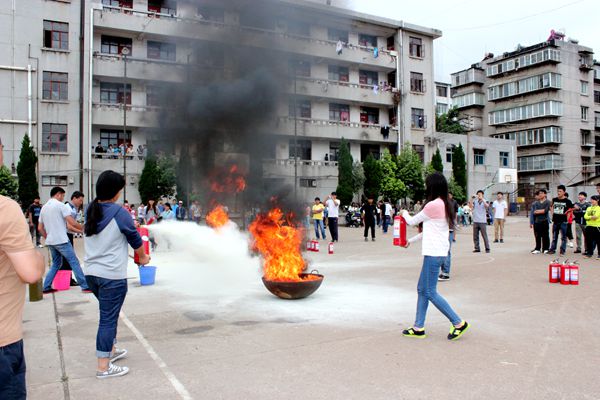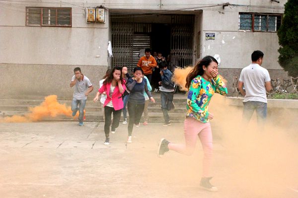 经济管理学院学生演练火灾自救